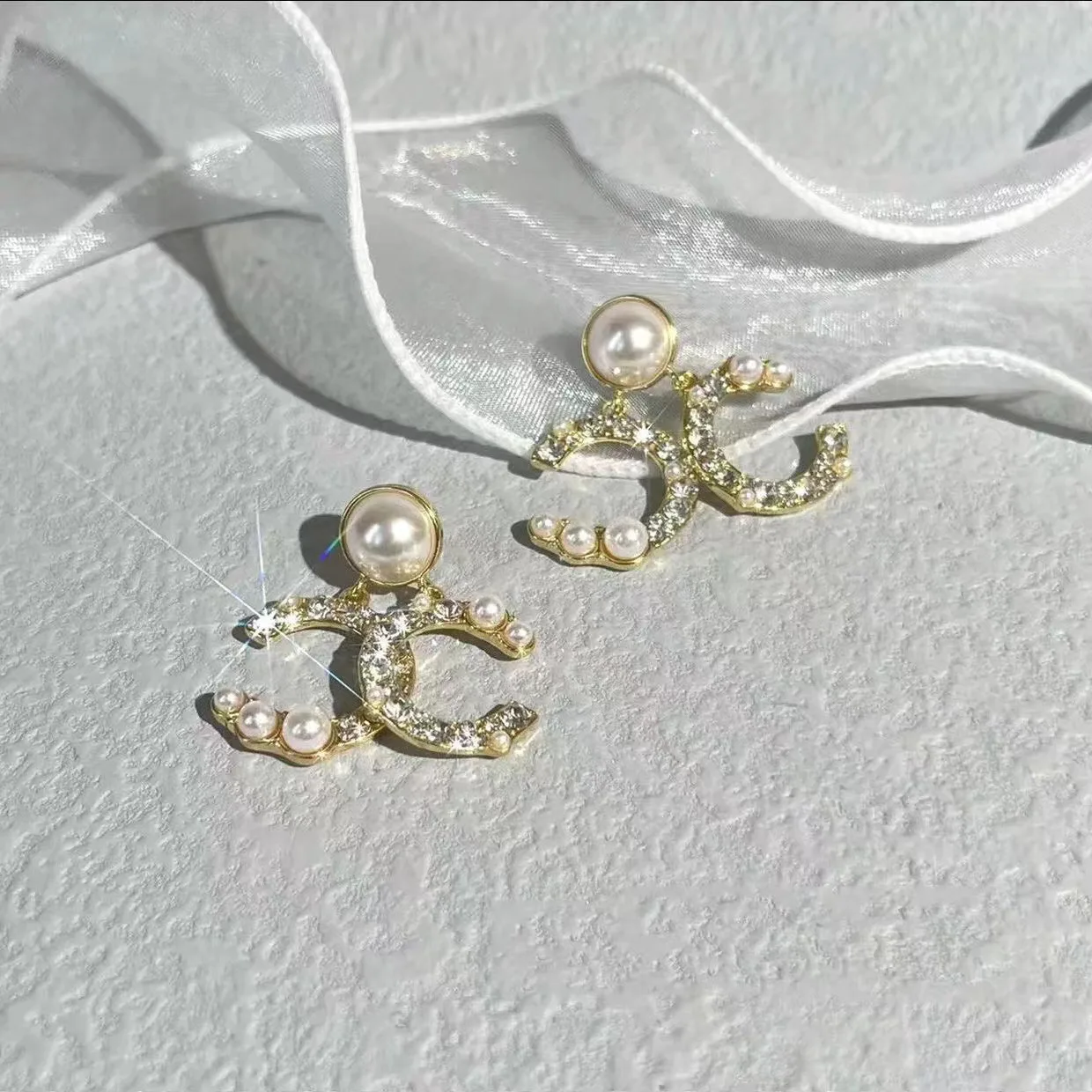Wholesale Designer Earrings Popular Brands Cc High Quality Fashion Earrings Pearl Drop Earrings