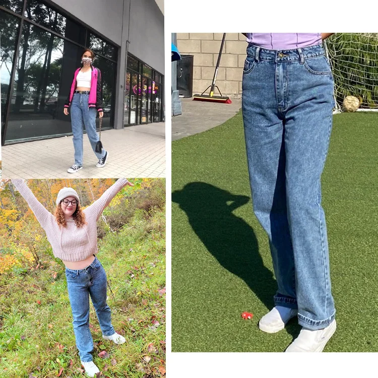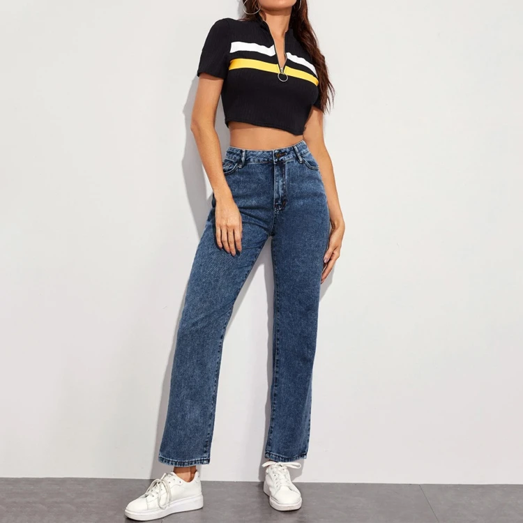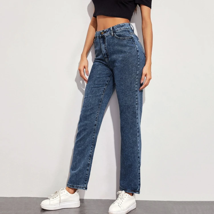 Wholesale Women Custom Solid High Rise Mom Jeans