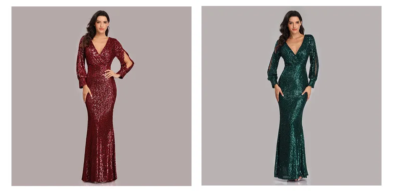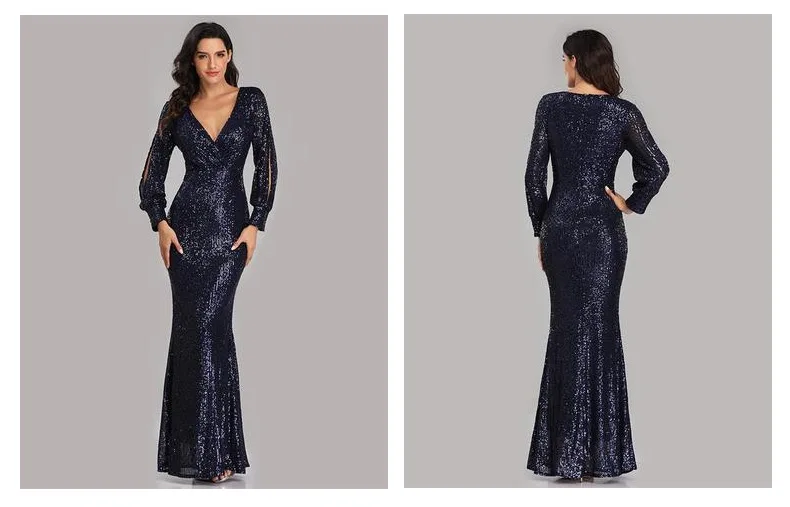 Women Ladies Elegant Prom Dresses Party Sequin Long Sleeved Evening Dress Fishtail Mother Of Bride Wedding Casual Dress
