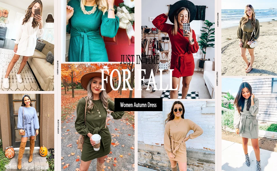 Product Name: | Women's Elegant Long Lantern Sleeve Short Dress Crewneck Tie Waist Knit Cocktail Dress | ||||||