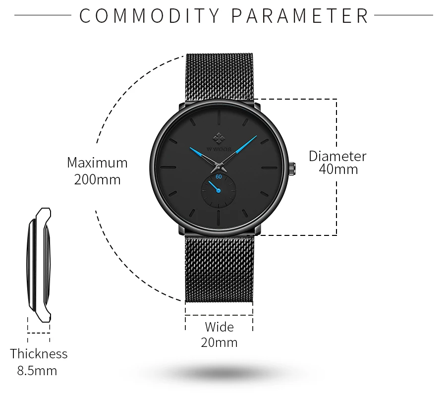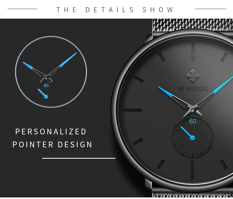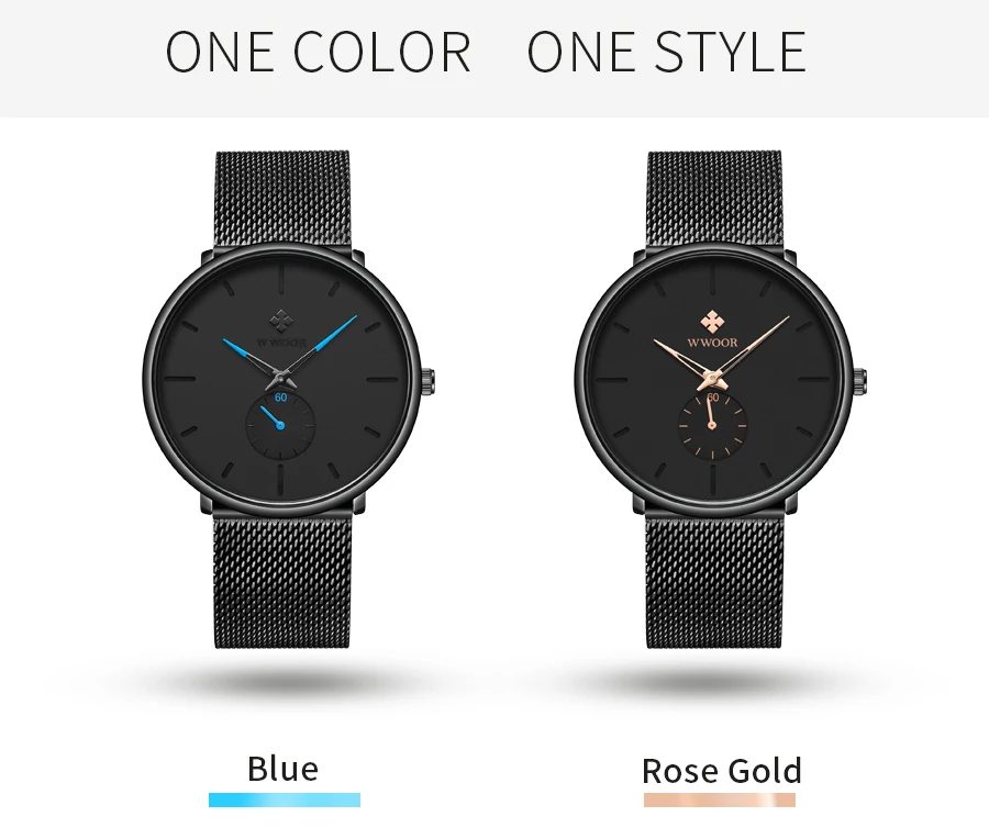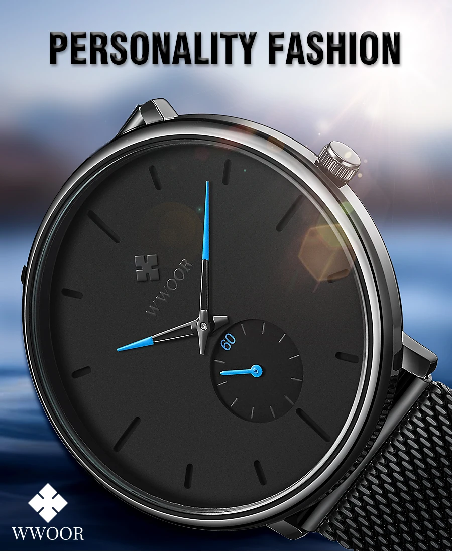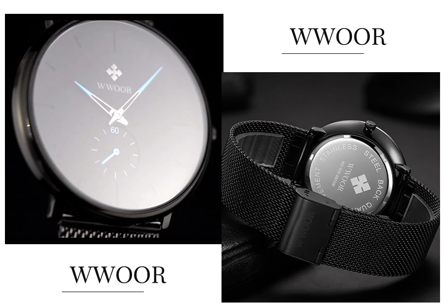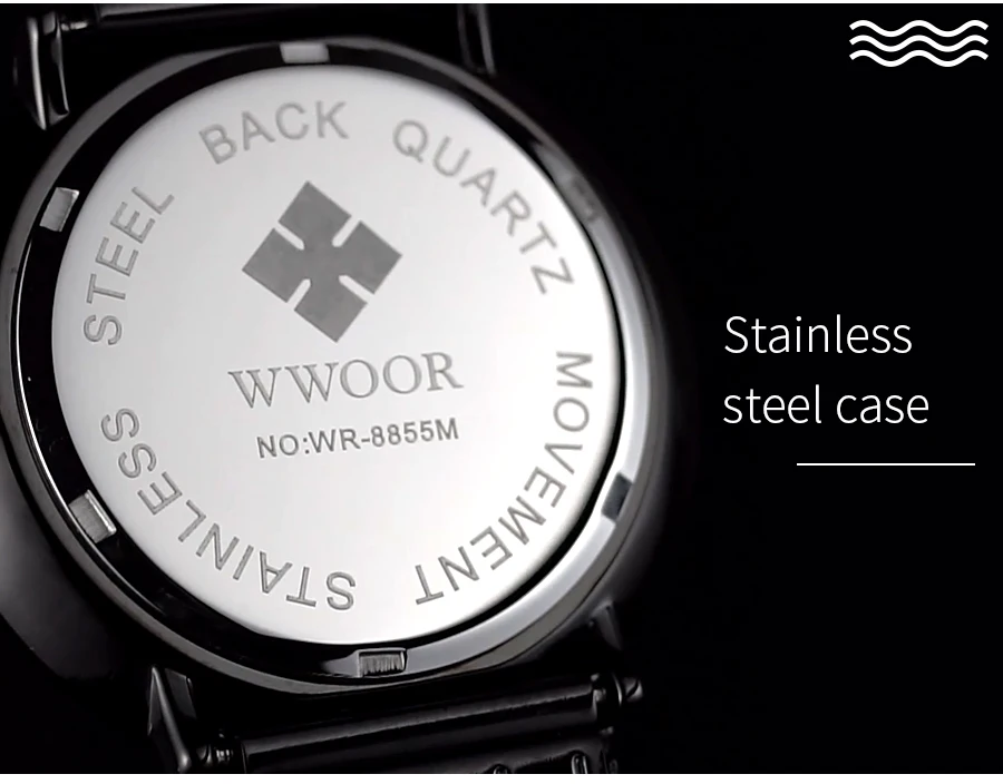 Wwoor Original Factory 8855 Luxury Stop Watch Slim Mesh Band Quartz Wrist Men Watches New Arrival Watch
