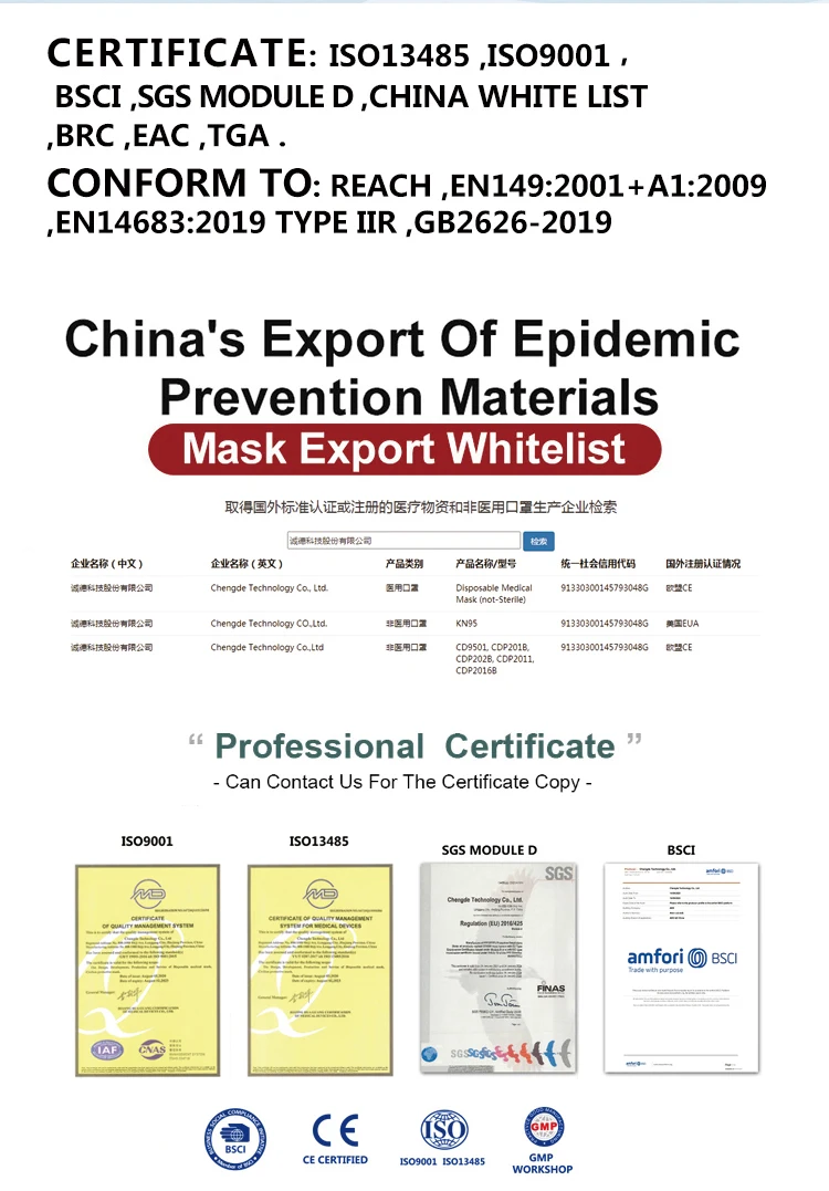 ---We accept OEM order for KN95 masks and 3-ply mask. Please feel free to contact us for more details.