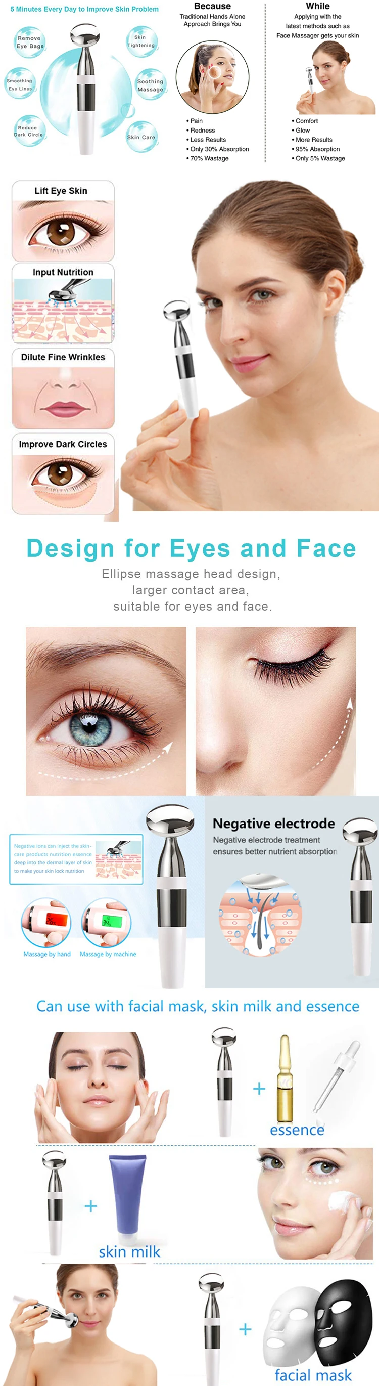 1.Made specifically for the delicate eye&lip&face area, this skincare device helps moisturize skin effectively.